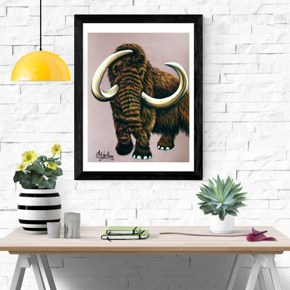 Woolly Mammoth Drawing Prehistoric Life Art Extinct Animal Etsy Uk