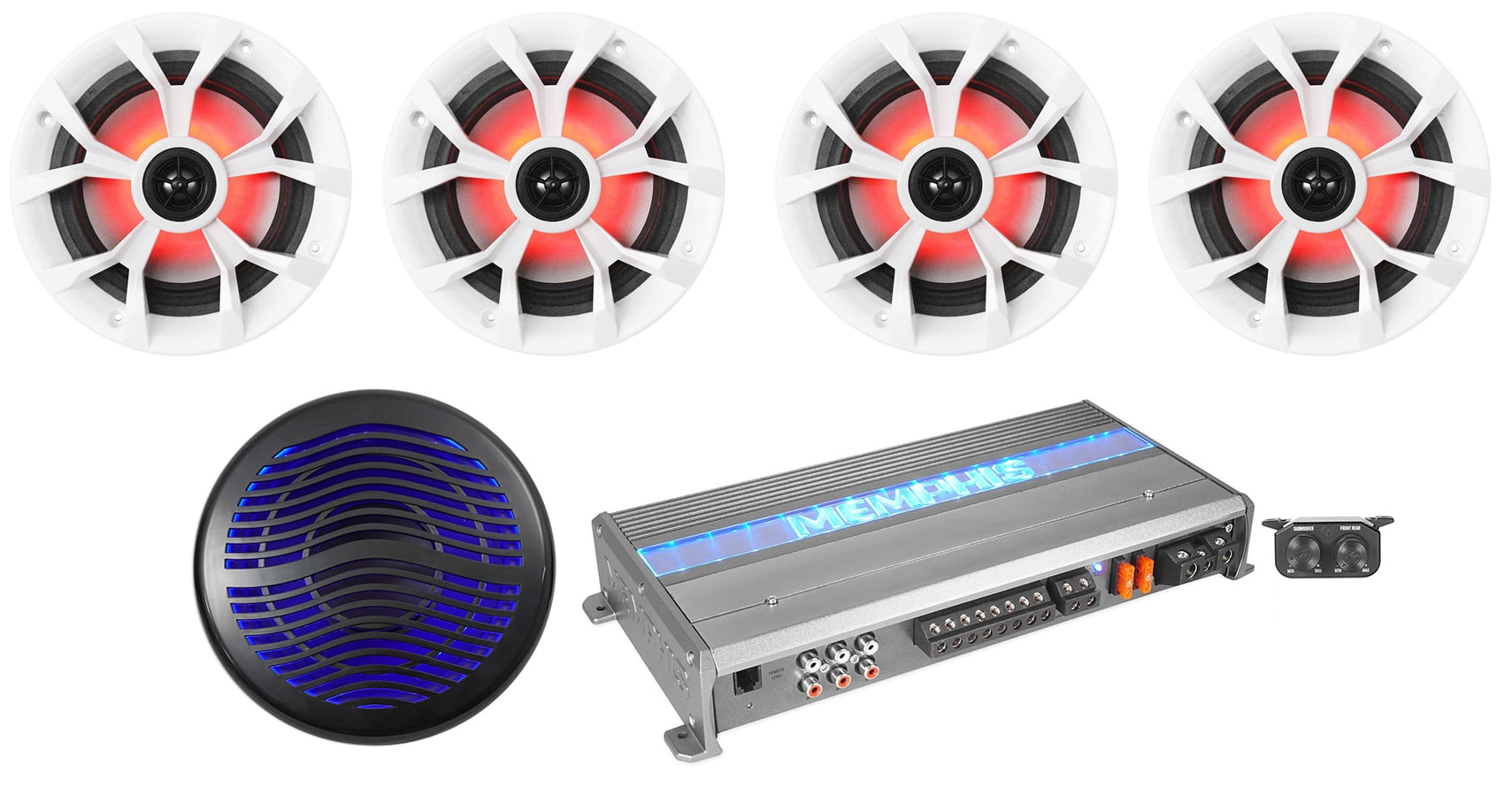 4 Rockville 6 5 Marine Speakers W Led 12 Free Air Sub Memphis 5 Ch Amplifier Walmart Com