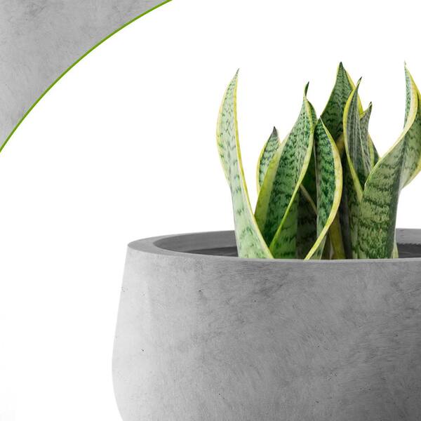 Sapcrete 11 15 19 D Concrete Round Modern Flower Pots Lightweight Outdoor Planters With Drainage Hole For Home Natural Sa0051abc P8021 The Home Depot